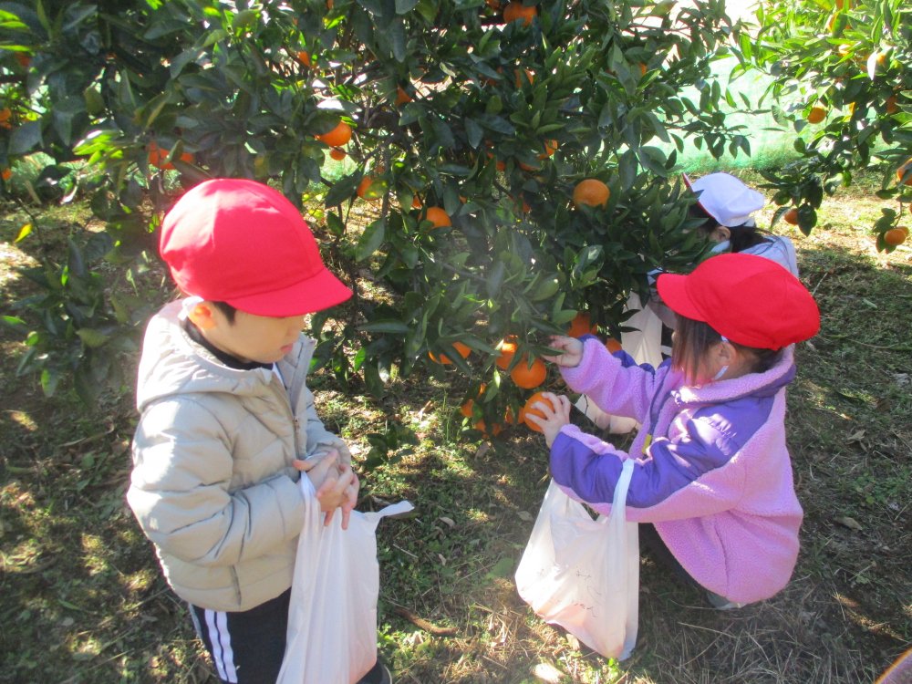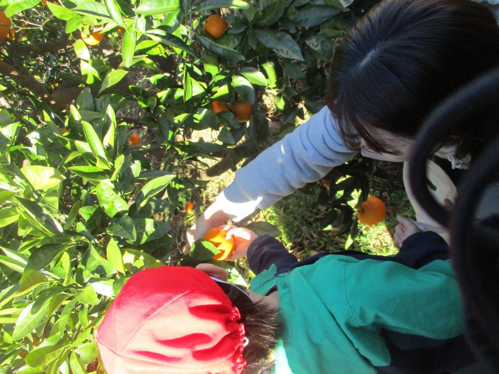 みかん畑は、卒園児のおじい様の畑で、池辺保育園のみんなをご招待いただきました。