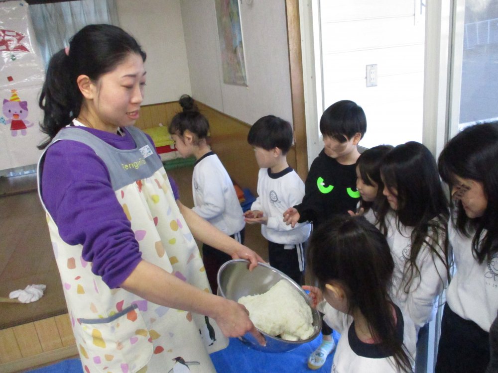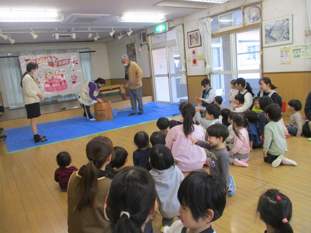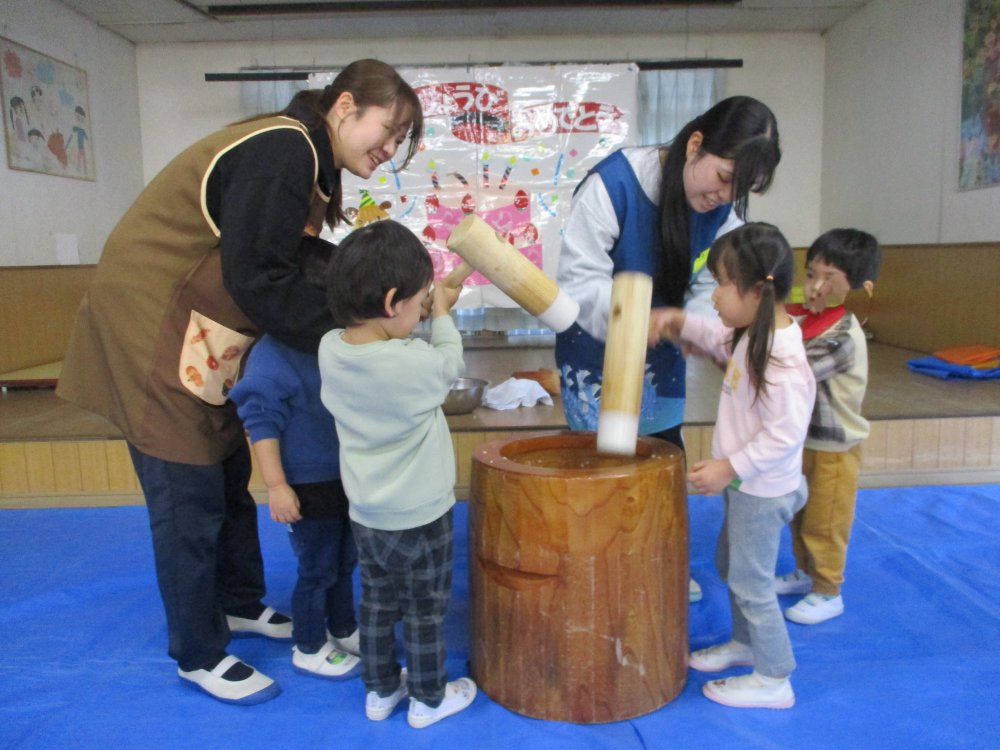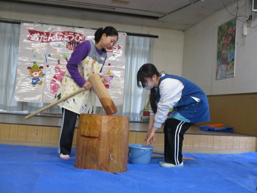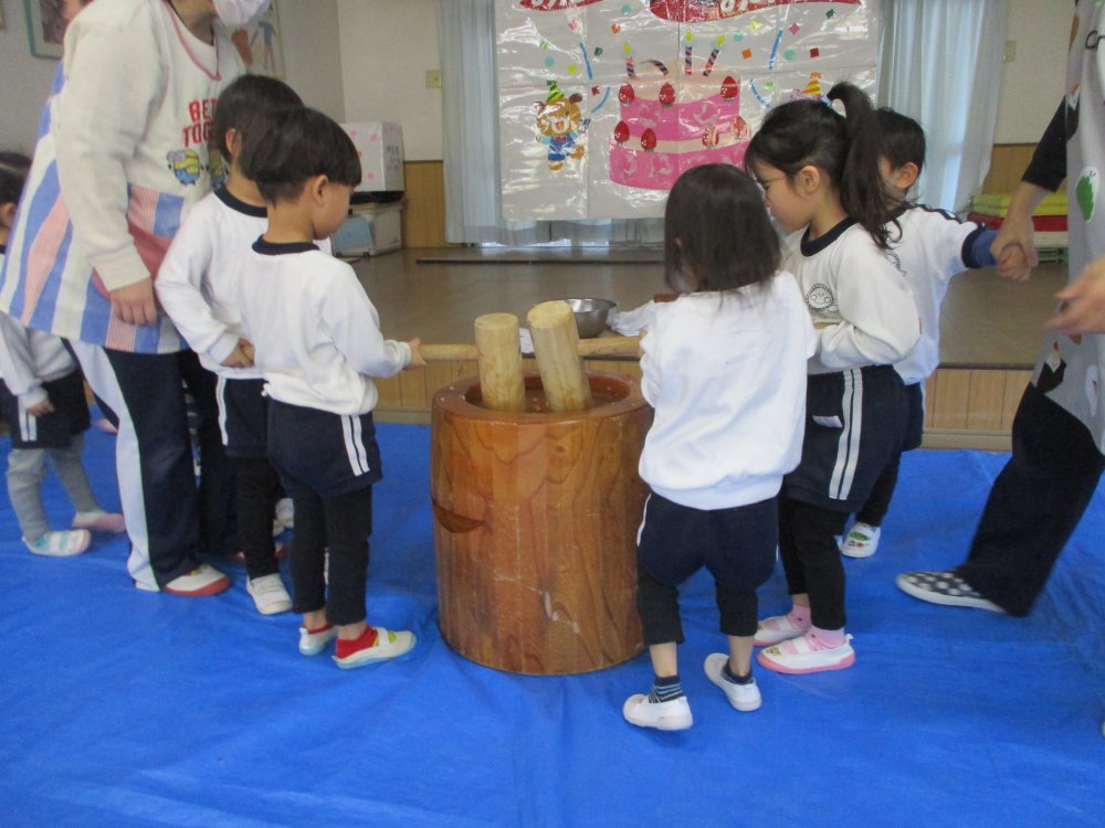 お誕生日会の日にお餅つきを行いました。