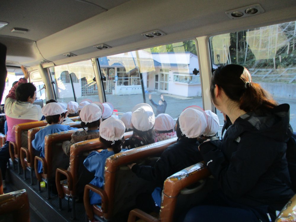 いよいよ都田幼稚園のバスに乗って、お芋の畑まで行きます。