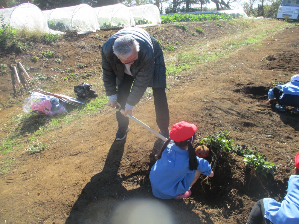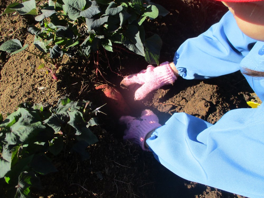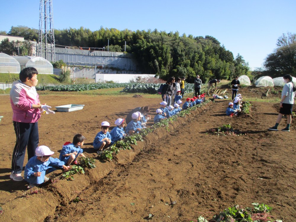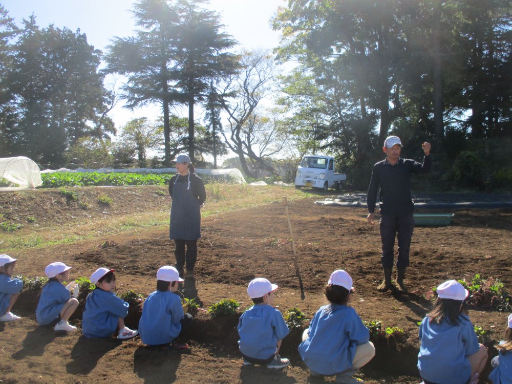 秋晴れの本日、ぱんだ、きりん、ぞう組はお芋ほりに行ってきました。