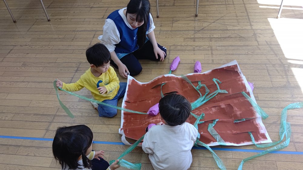 保育園では、ひよこ・りす・うさぎ組さんがお芋ほりごっこを楽しみました。