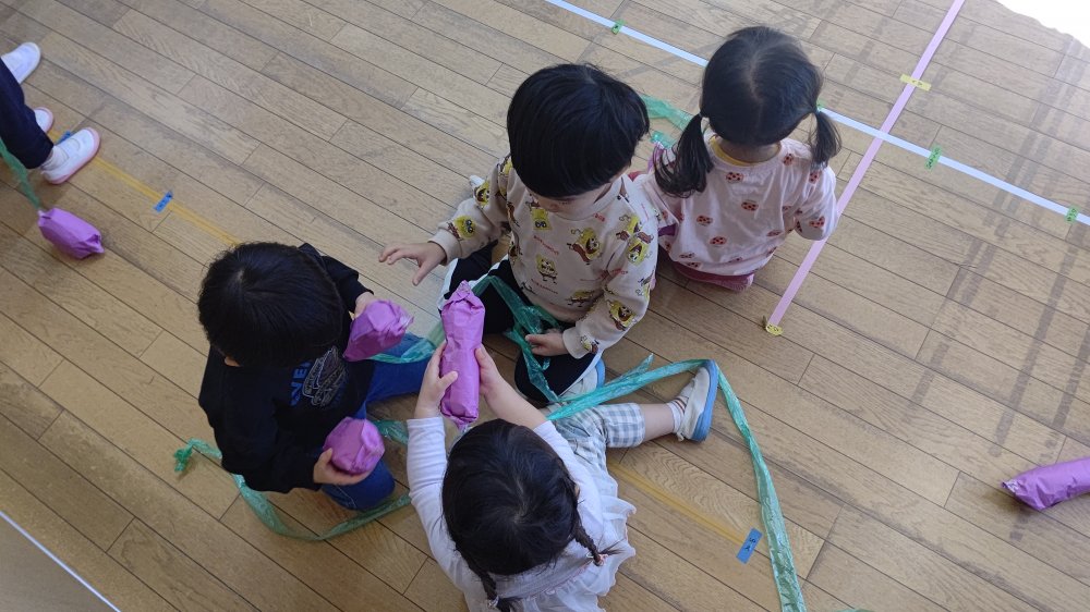 また、ひよこ・りす・うさぎ組はお部屋でお芋ほりごっこを行っています。