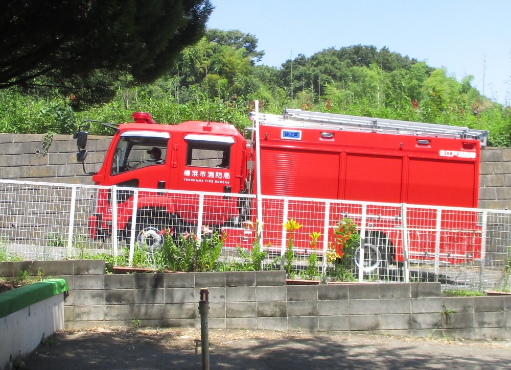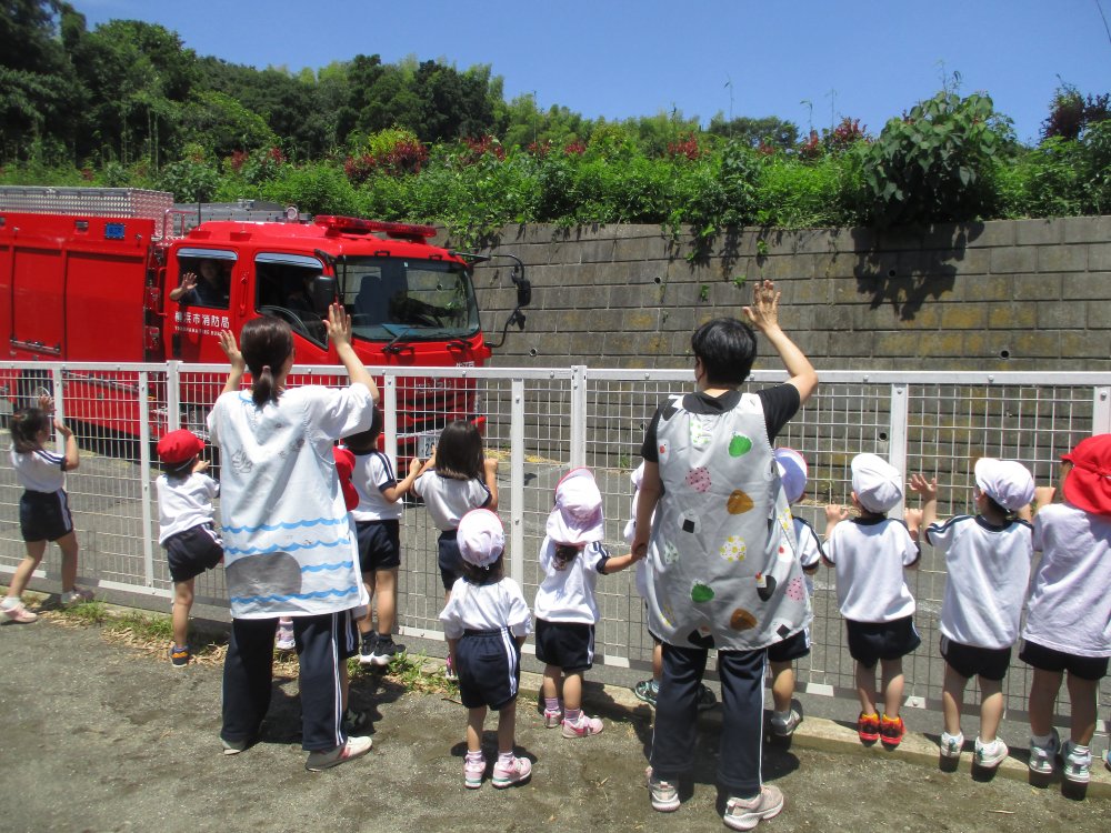 最後は、消防車にてを振ってお別れです。
