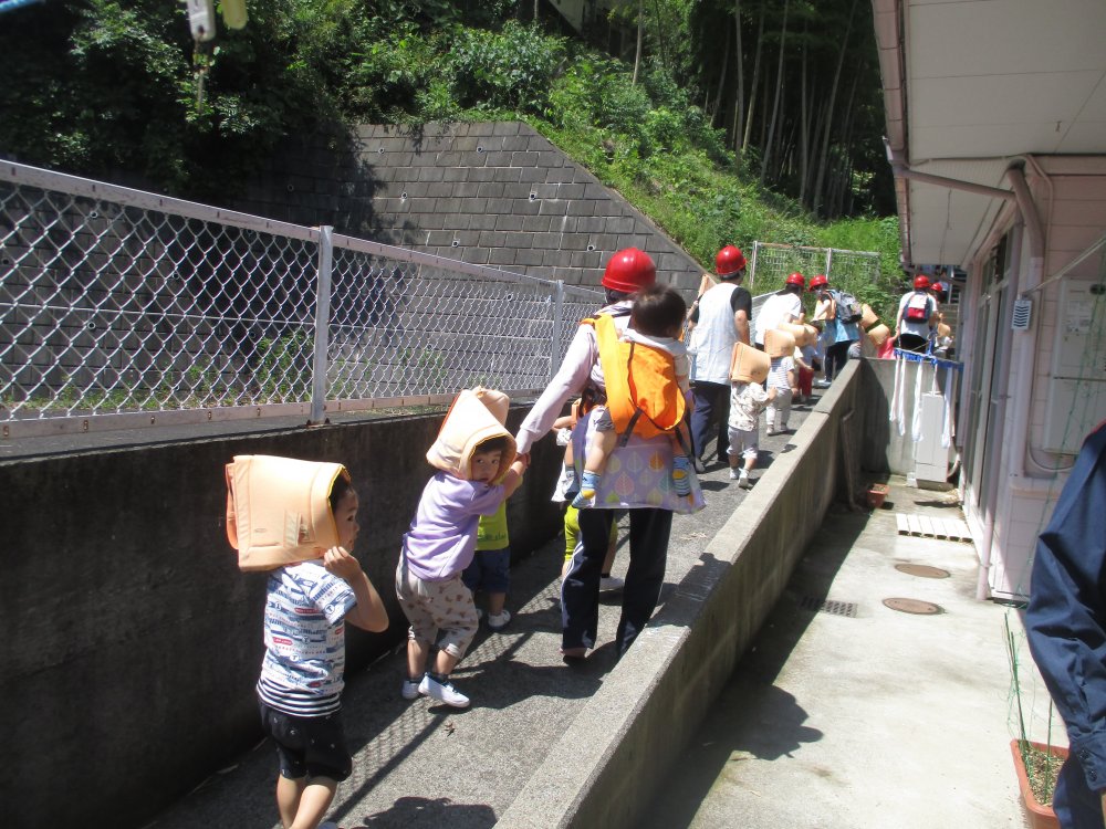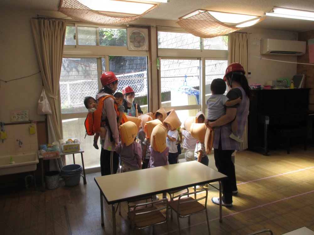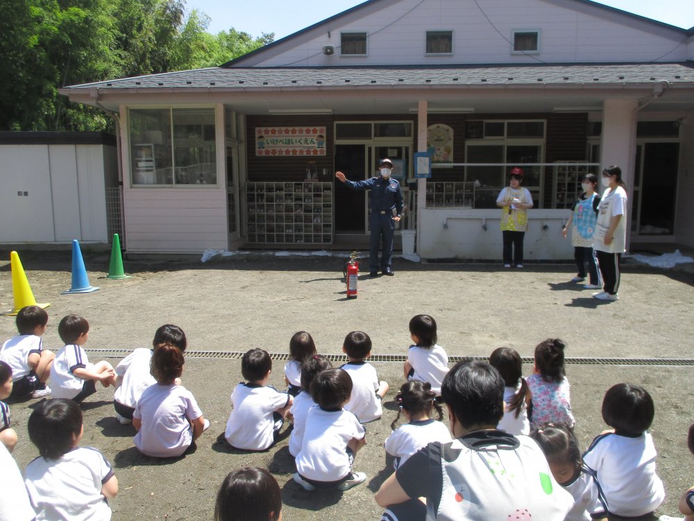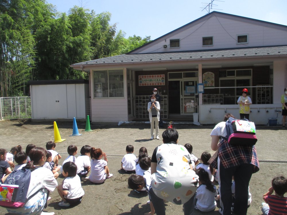 池辺保育園では、毎月防災避難訓練をおこなっています。