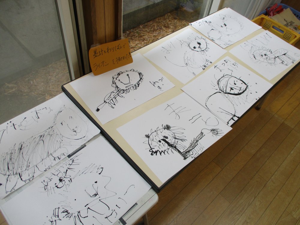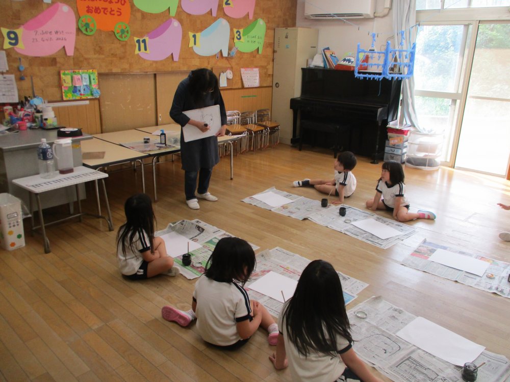 ぞう組は「墨でライオンを描いてみよう」