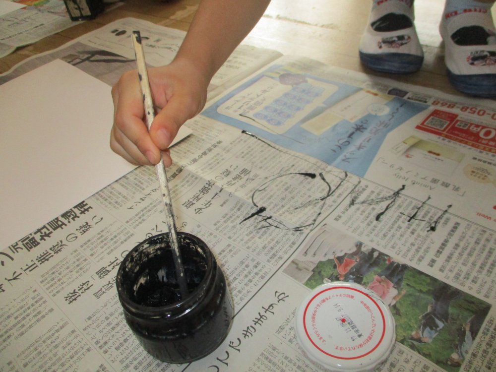 墨汁と割りばしを使うのが初めてなので試し書きもしてから進めました。
