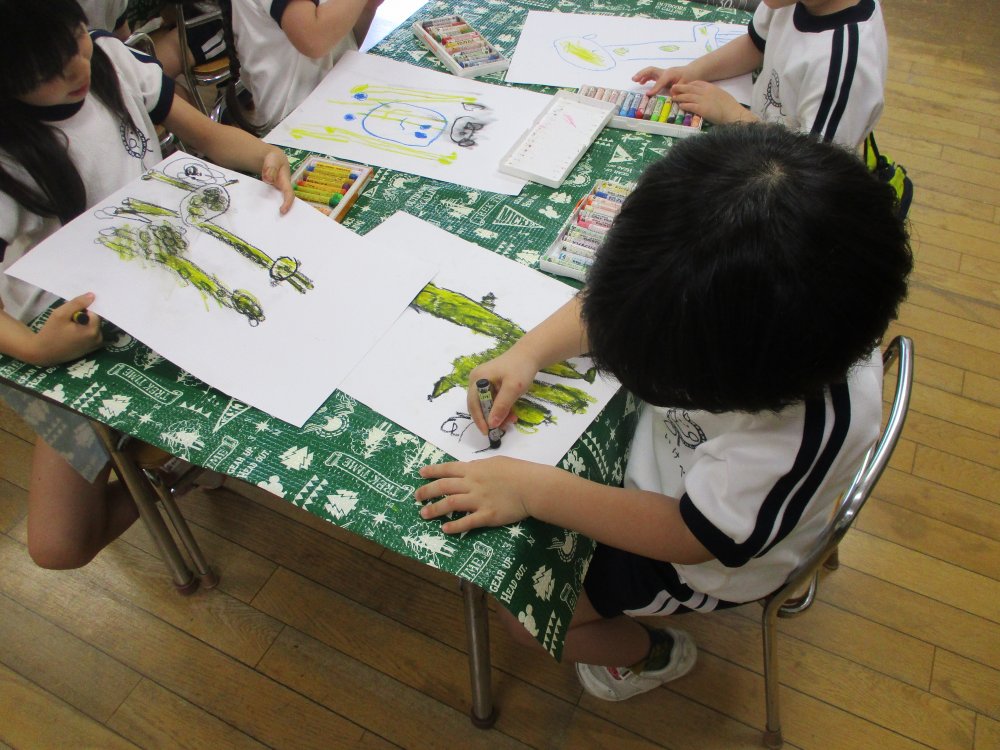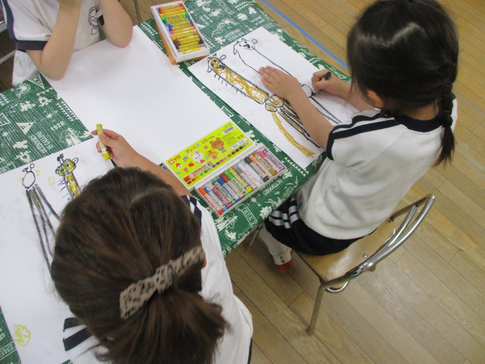きりん組は「クレヨンでキリンを描いてみよう」でした。