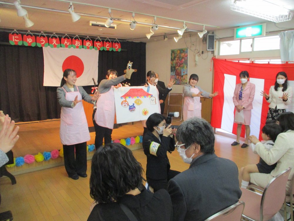 池辺保育園の入園式は、手遊び歌から始まります。