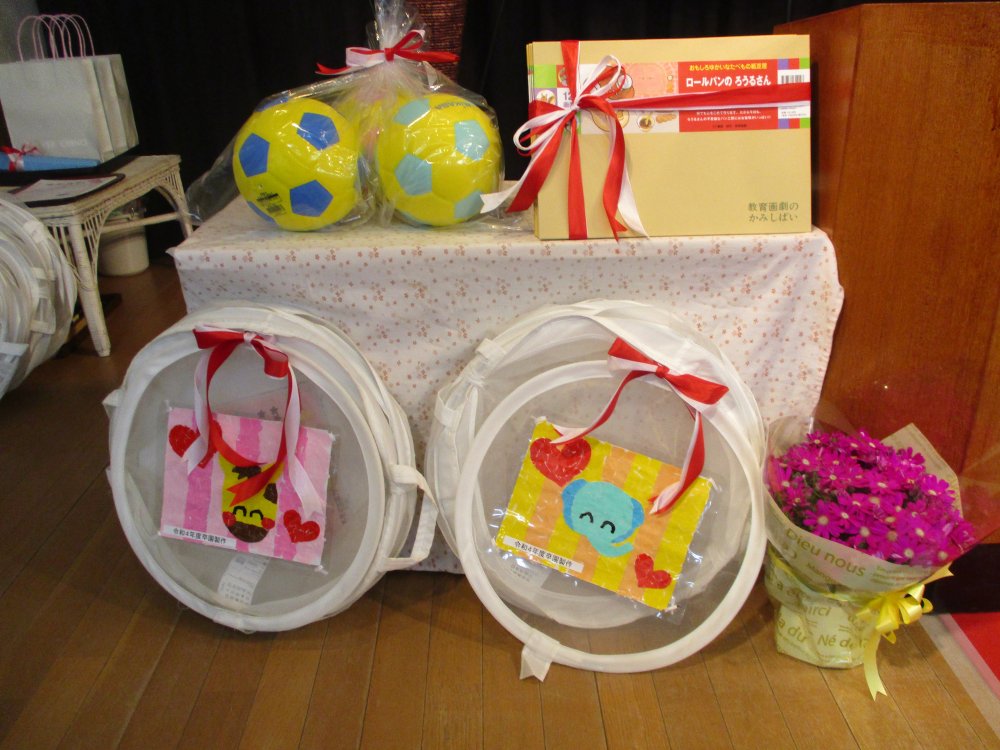 卒園児保護者の皆様から頂いた紙芝居とボールは大事に使わせていただきます。