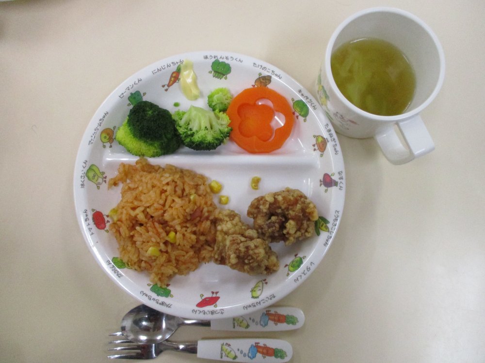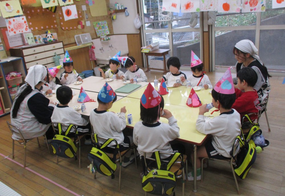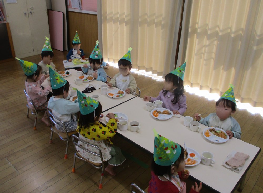 帽子をかぶっていつもと違う、給食とおやつの時間を楽しみました。